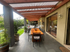 177/400 m2 aprox. Linda casa en condominio, muy segura No Perimetral, cercana a colegios y comercios, con buena locomoción y conectividad.hall de entrada; baño de visita; recibos separados con salida a linda y amplia terraza con piso de piedra pizarra; cocina con comedor de diario, 2 amplias logias (con posibilidad de incorporar a la cocina); y dependencias de servicio completas.dormitorio principal en suite con walk-in-closet y baño con ventilación natural.2° piso: 3 dormitorios, 2 baños y sala de estar.La casa cuenta con un hermoso jardín formado, con riego automático y gran piscina.calefacción central por radiadores y aire acondicionadoestacionamiento para 4 autosCondominio de 17 casas, con seguridad 24/7, juego de niños y estacionamiento de visita.