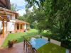Maravillosa casa estilo colonial con un lindo jardín y muchas zonas diferentes de descanso en Los Dominicos, calle de gran plusvalía y seguridad.1er piso: Hall de entrada amplio con linda vista al jardín, grandes recibos separados con salida a terrazas y al jardín, cocina amoblada y equipada con comedor de diario separado, servicios y lavadero, 1 salas de estar , escritorio o 5 to dormitorio), 2 baños (1 vista), dormitorio principal en suite con w.closet y vista al jardín y terraza.2do piso: estar, 3 dormitorios ( 1 con balcón) , 2 baños.Exteriores: piscina, terrazas, sector quincho muy acogedor y entretenido, 4 estacionamientos techados, patio de servicios amplio, bodegas,Interior: pisos de madera y parquet, mármol entrada